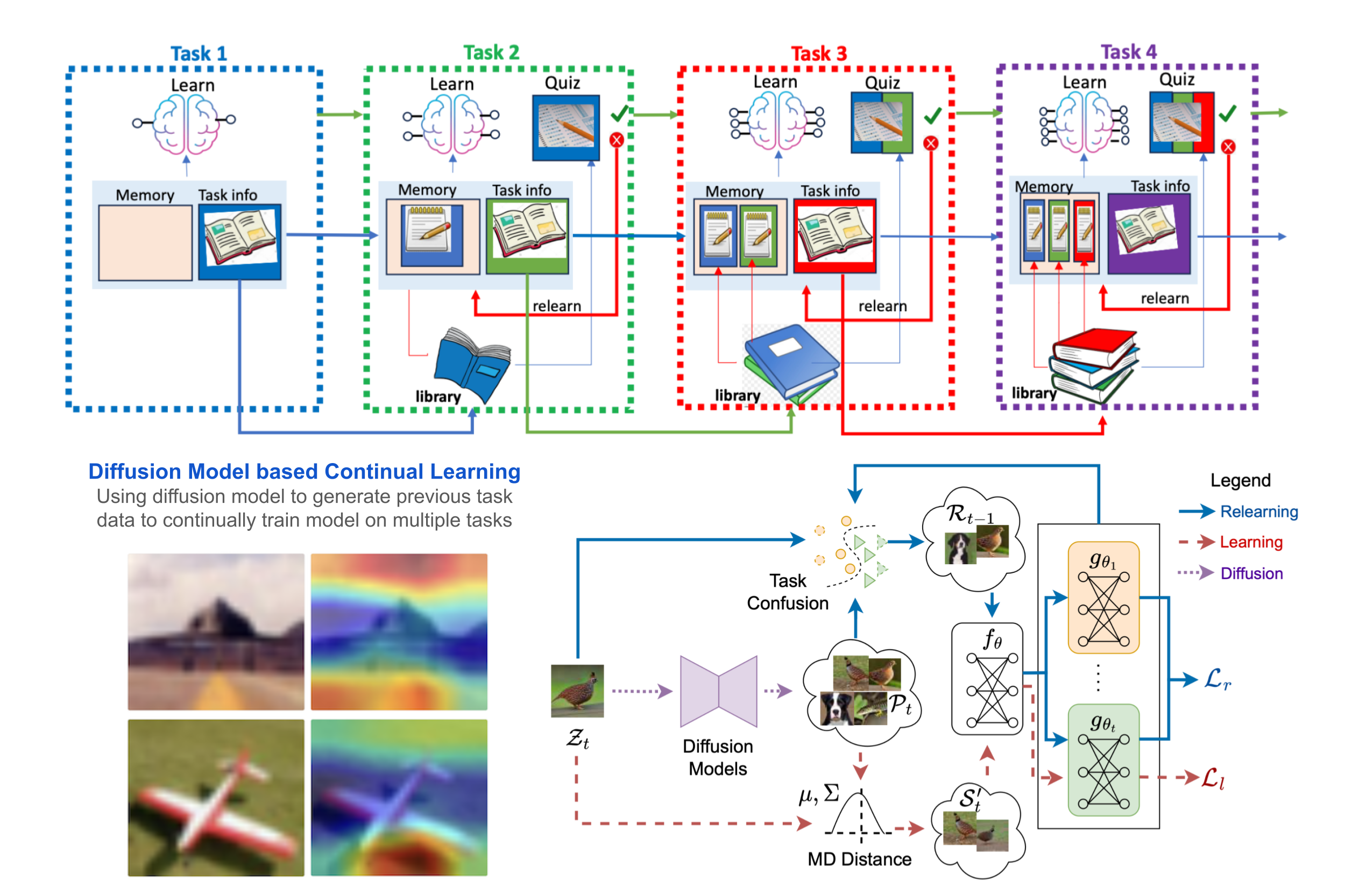 Continual learning models can learn new tasks over time while trying to maintain what they have learned before. Inspired by how humans revisit past knowledge, we introduce a new relearning method that uses generative replay to measure how much information is lost after learning a new task. We then realign the model by retraining it for a few epochs on a selected subset of library samples that the model finds confusing across tasks, essentially performing a targeted generative relearning step. Paper