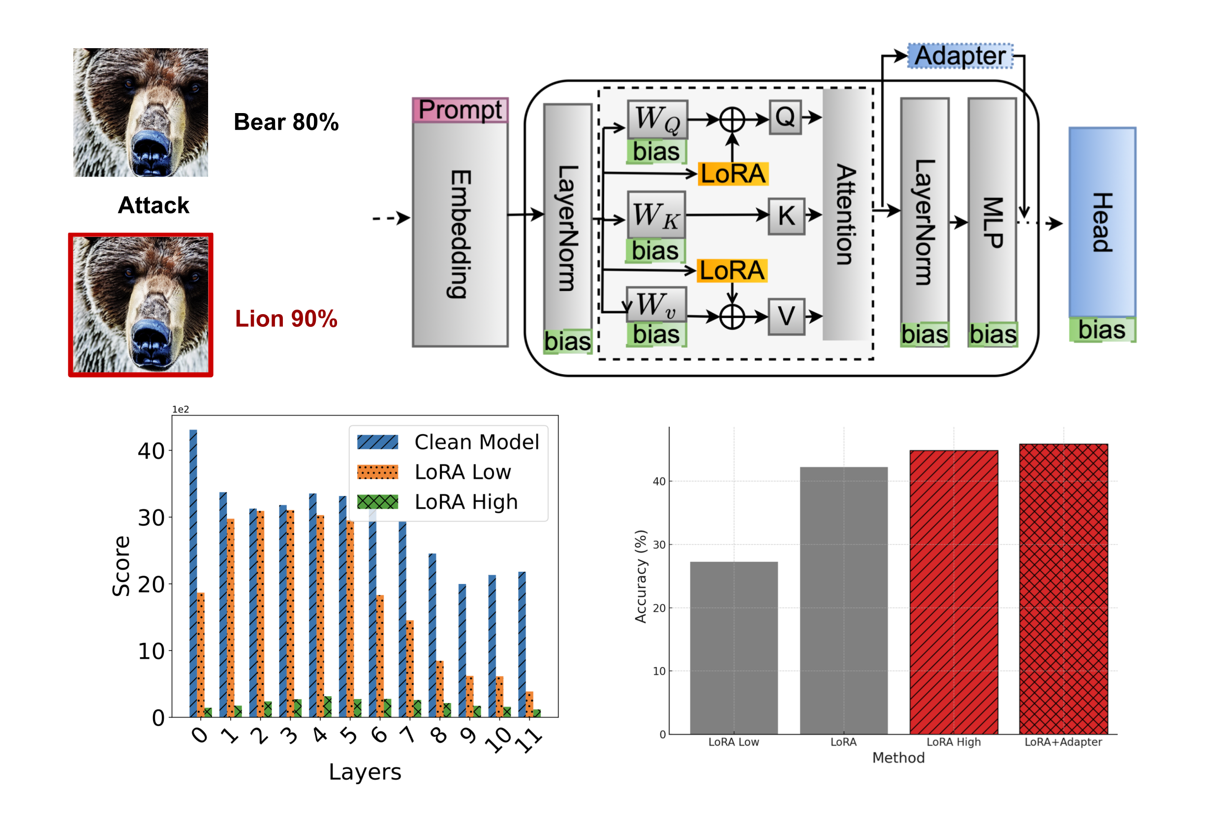 Adversarial robustness in ViTs can be improved by recognizing that not all layers are equally vulnerable to attacks. Instead of uniformly adapting the model, we focus on parameter-efficient finetuning (PEFT) that identifies and reinforces these vulnerable layers. By selectively allocating more parameters to the layers that contribute most to adversarial weakness, our layer-aware PEFT strategy strengthens the model’s defenses while remaining efficient. Paper